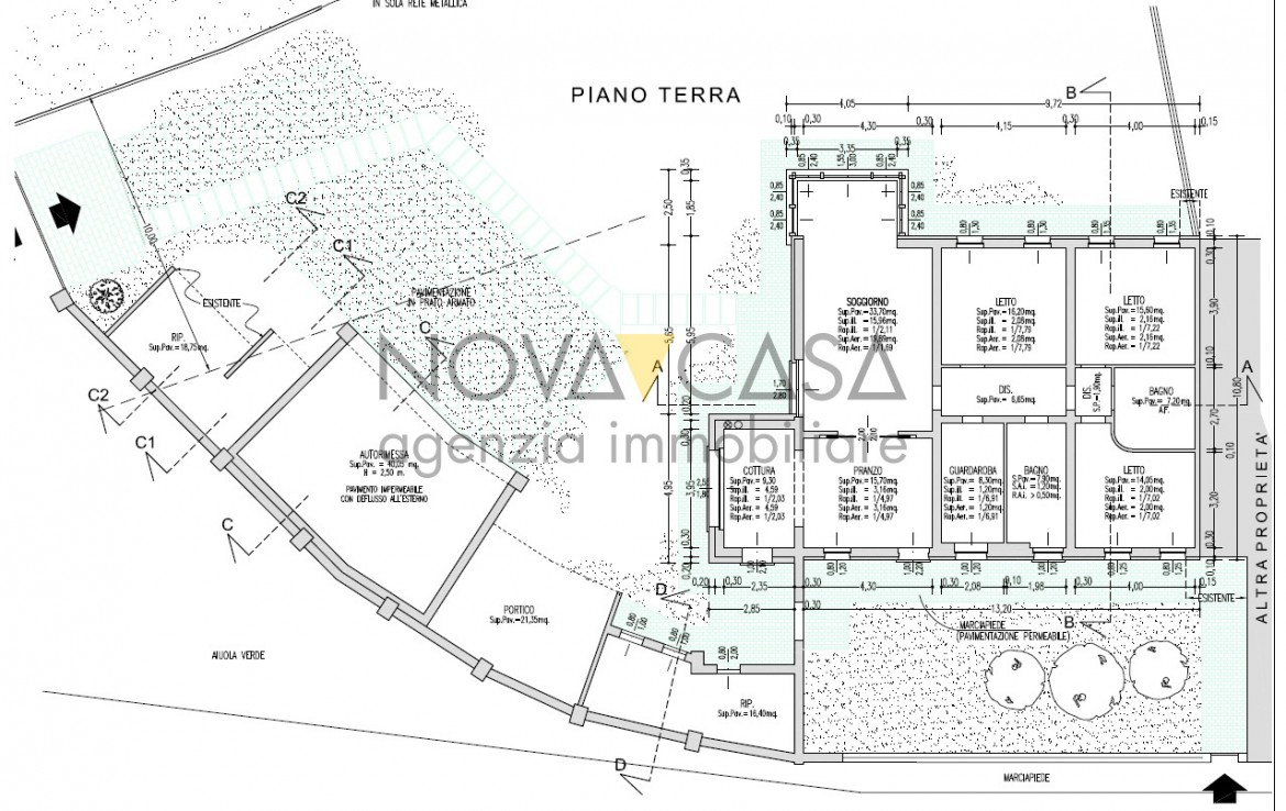 Le immagini si riferiscono ad una bozza di progetto per la realizzazione di più unità abitative, mentre la planimetria mostra un progetto per la realizzazione di una villa unifamiliare interamente al piano terreno.