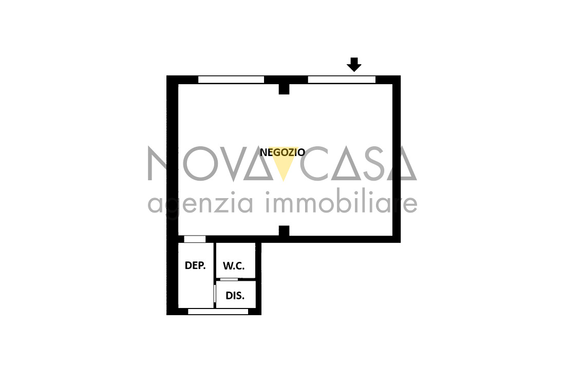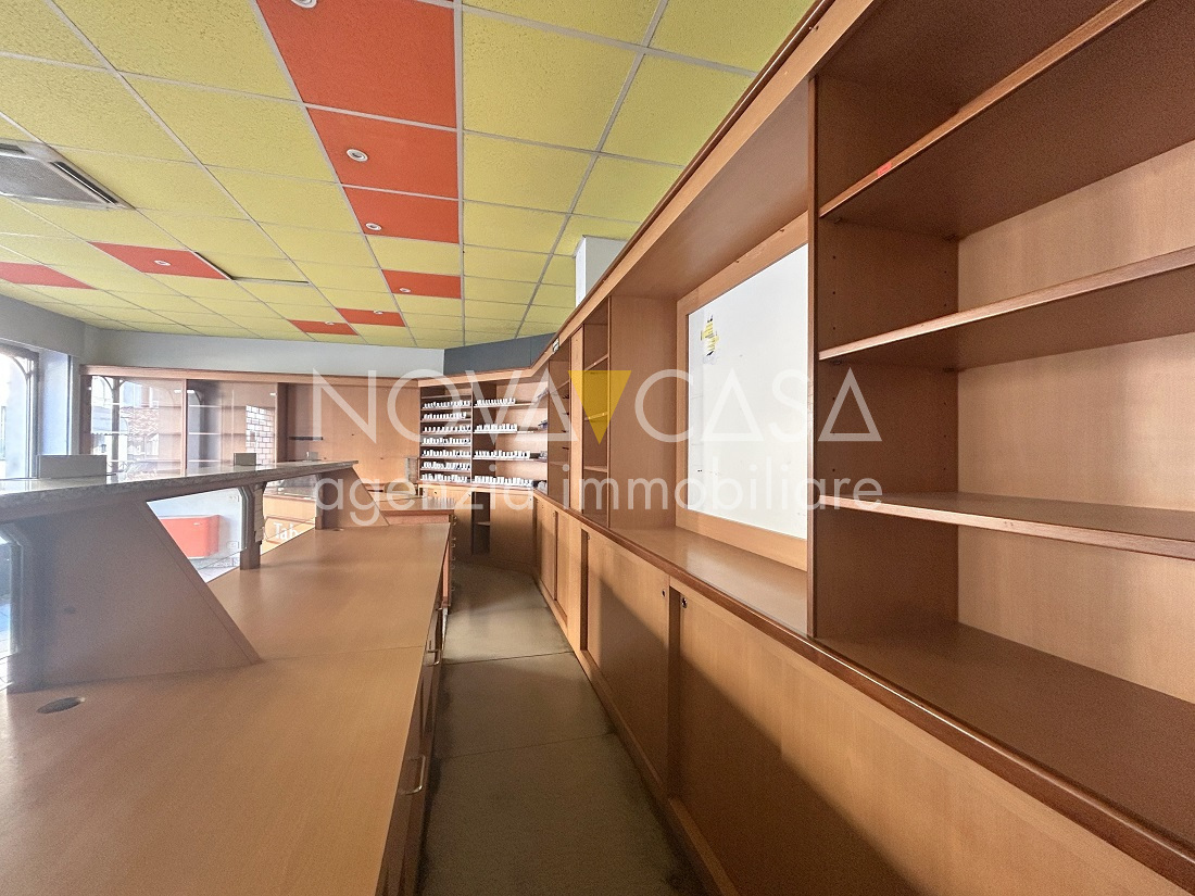 Negozio con ingresso indipendente fronte strada, composto da unico ambiente con due vetrine, piccolo deposito, disimpegno e bagno.