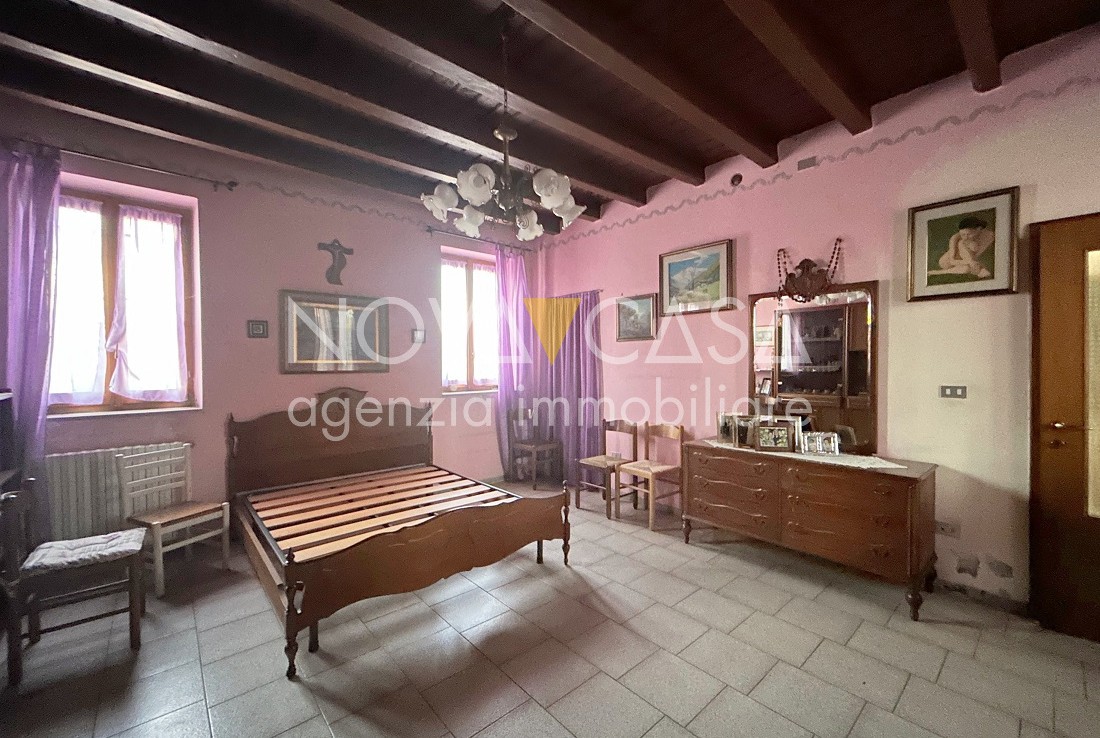 La proprietà è costituita da due fabbricati. Fabbricato residenziale: abitazione con porticato di 40 mq, disposta su tre piani; piano terra di 60 mq composto da atrio d’ingresso, soggiorno, cucina abitabile, disimpegno e bagno; piano primo anch’esso di 60 mq, composto da due camere matrimoniali; piano secondo composto da un vano in sottotetto di 30 mq. Fabbricato rurale: due autorimesse con sovrastante fienile recuperati in quelle che in passato erano le stalle. A lato delle autorimesse dispone in un portico di circa 27 mq. Il cortile a servizio dei fabbricati è di circa 230 mq.