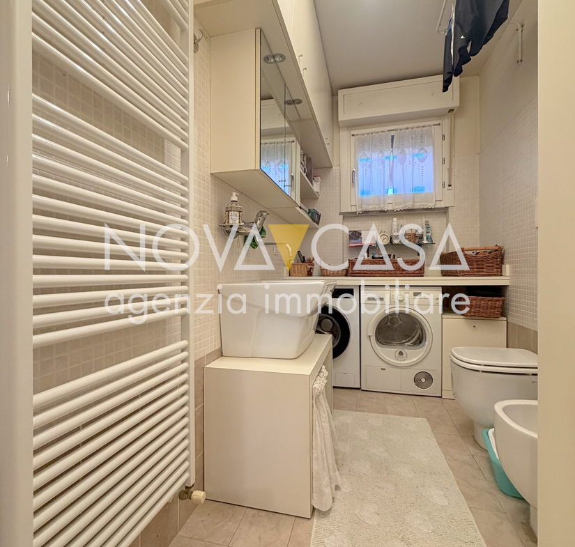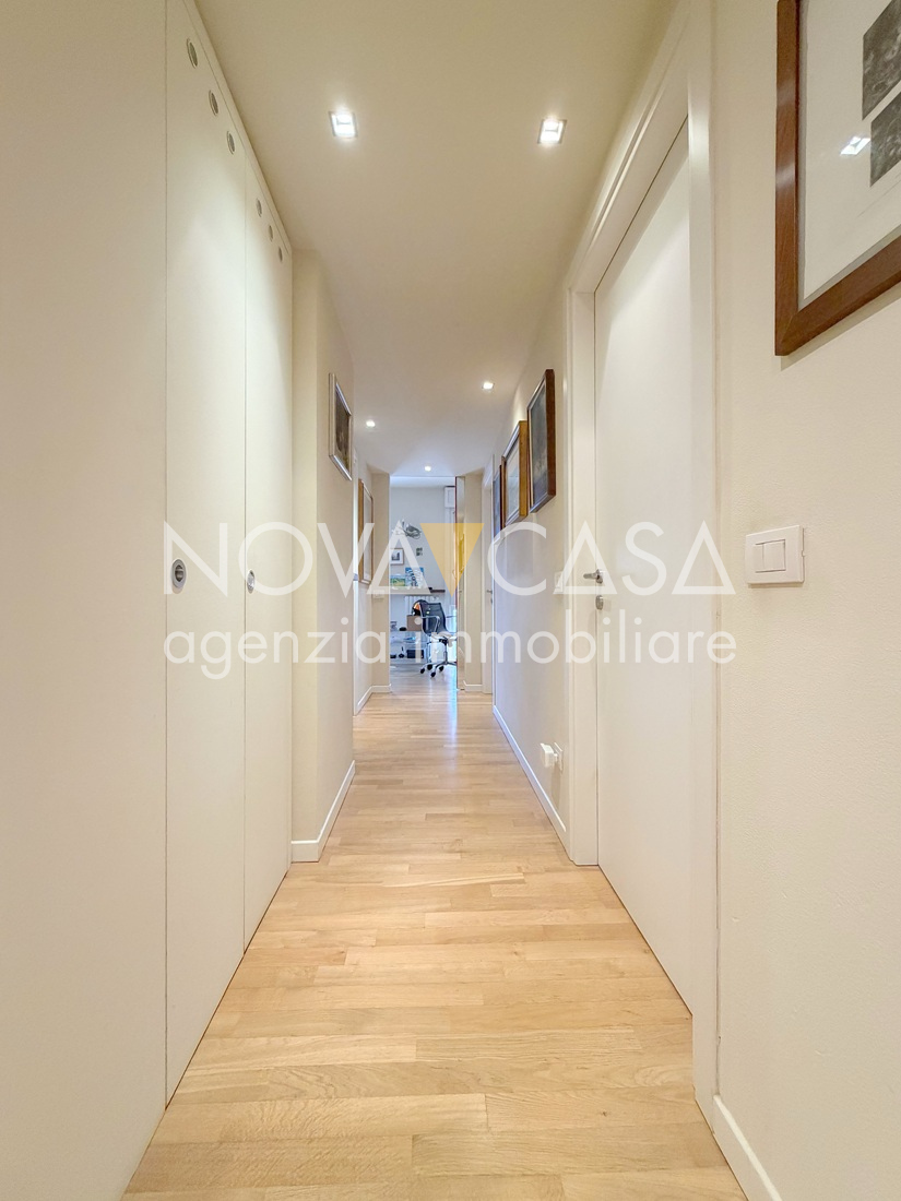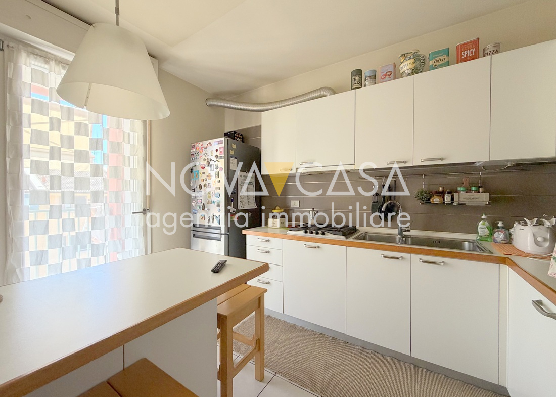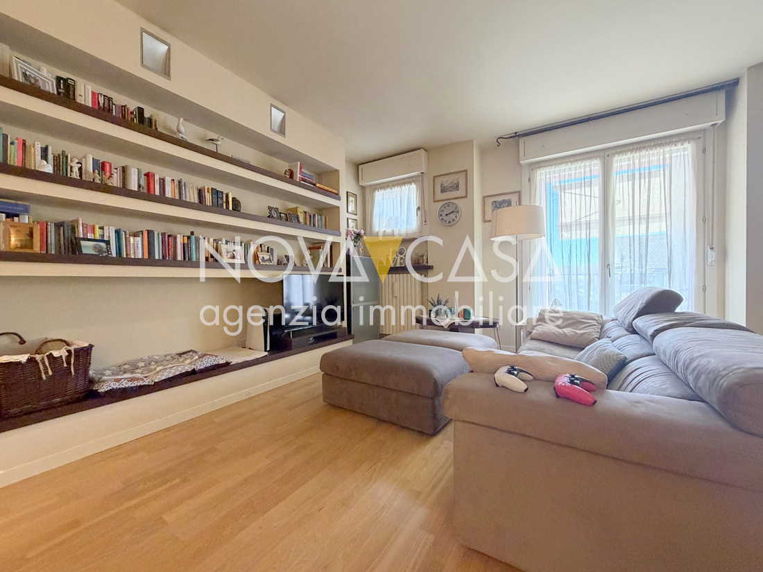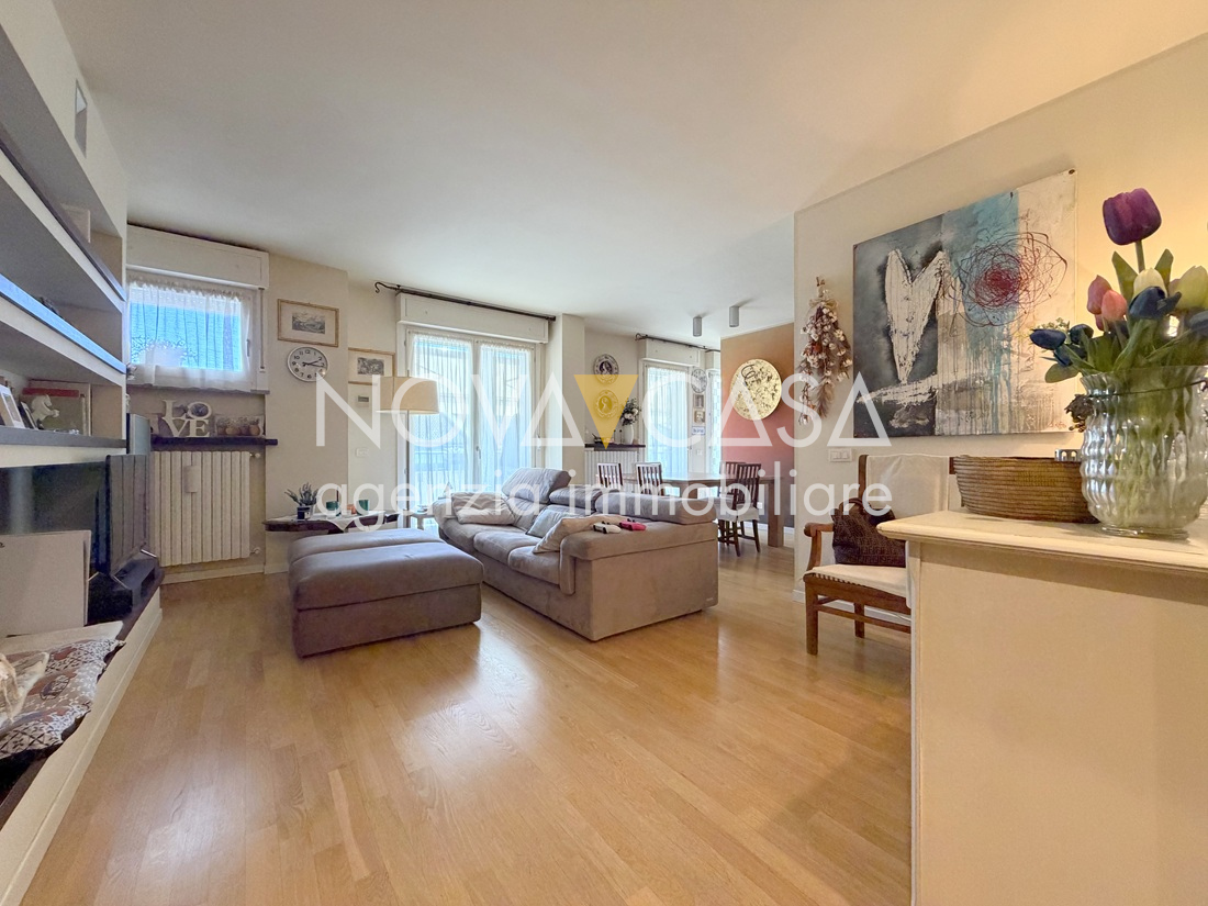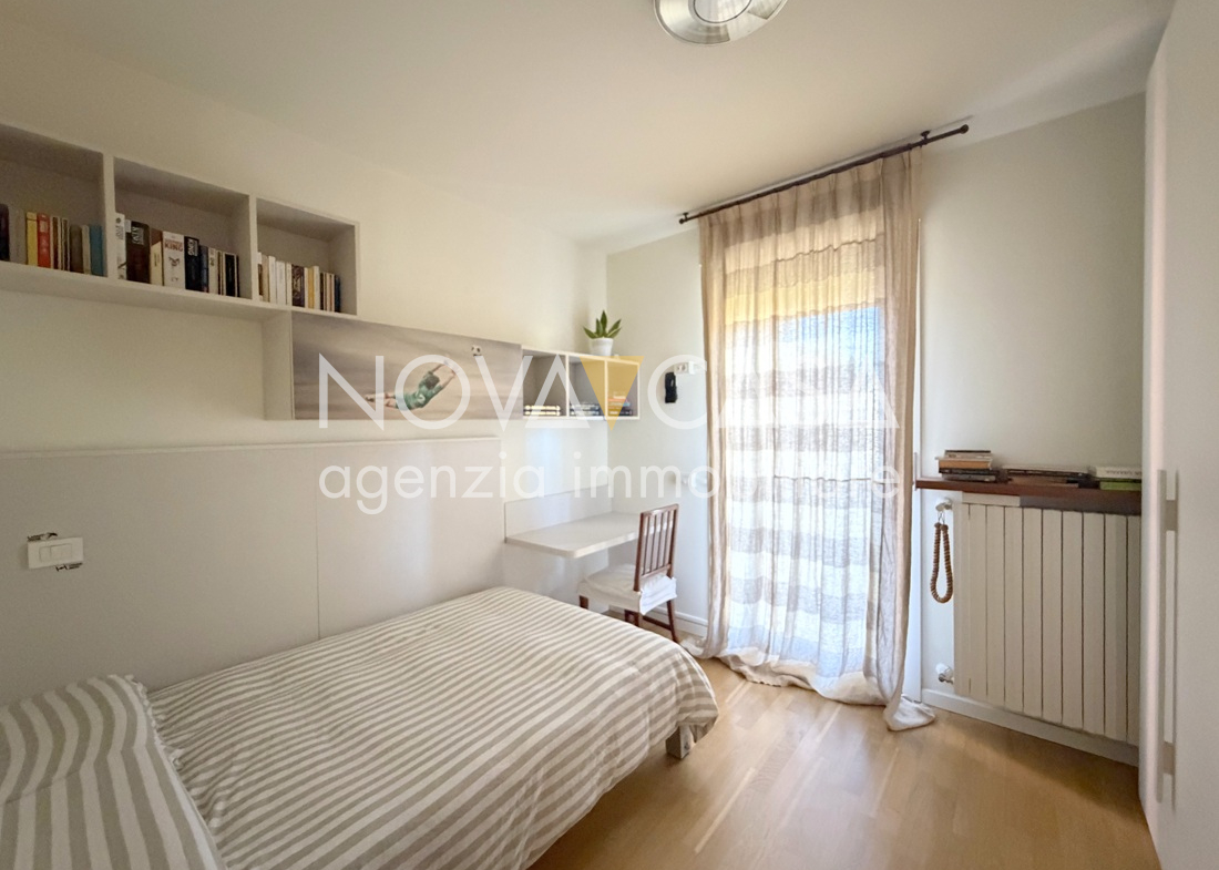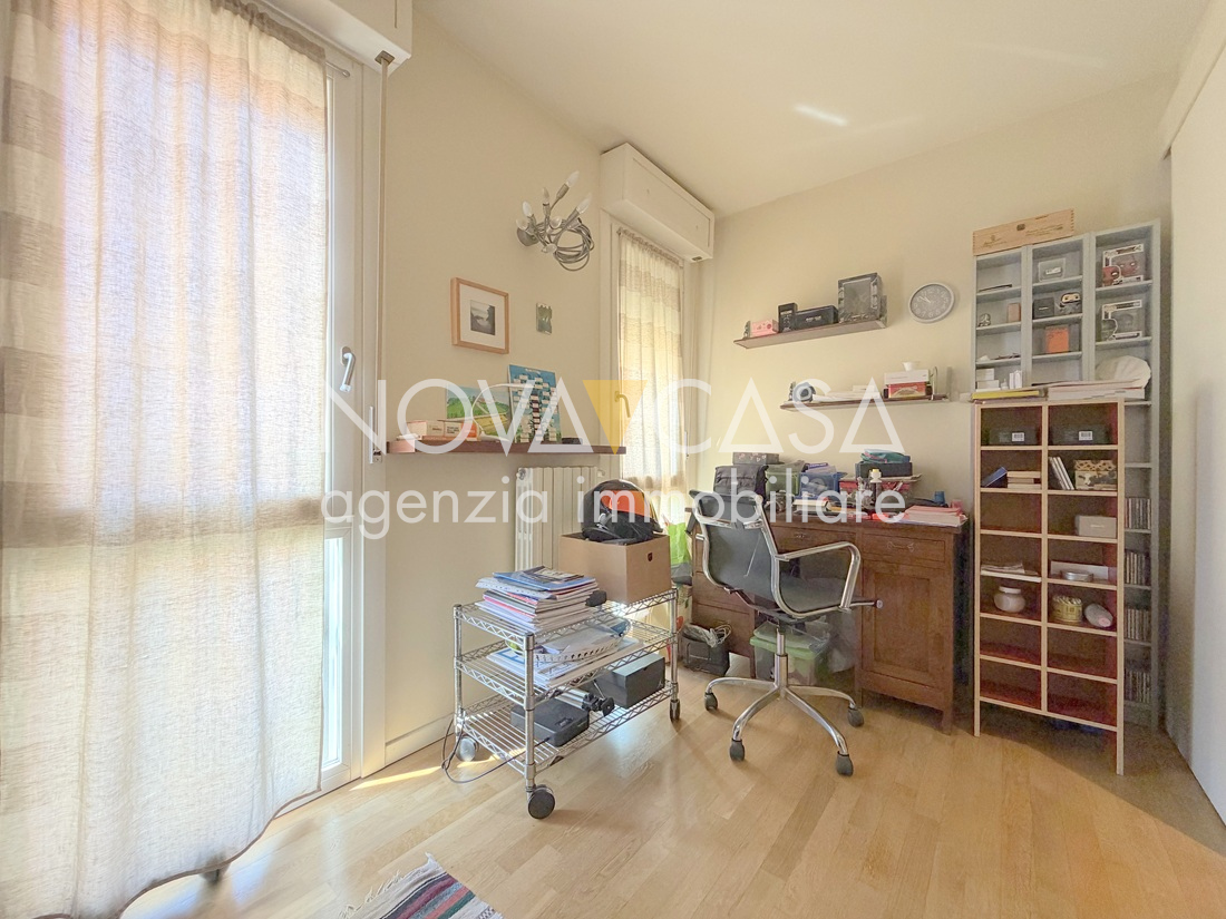 Appartamento di oltre 120 mq, posto al secondo piano servito da ascensore, composto da atrio d’ingresso, ampia zona giorno di circa 40 mq con angolo cottura, loggia di 15 mq, disimpegno, tre camere da letto, bagno, lavanderia, ripostiglio e un ulteriore loggia di circa 10 mq. Completano la proprietà uno spazioso box singolo con cantina.