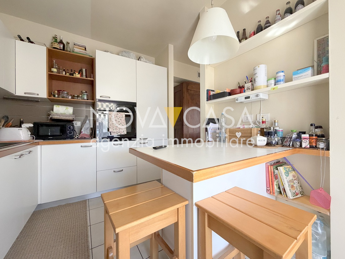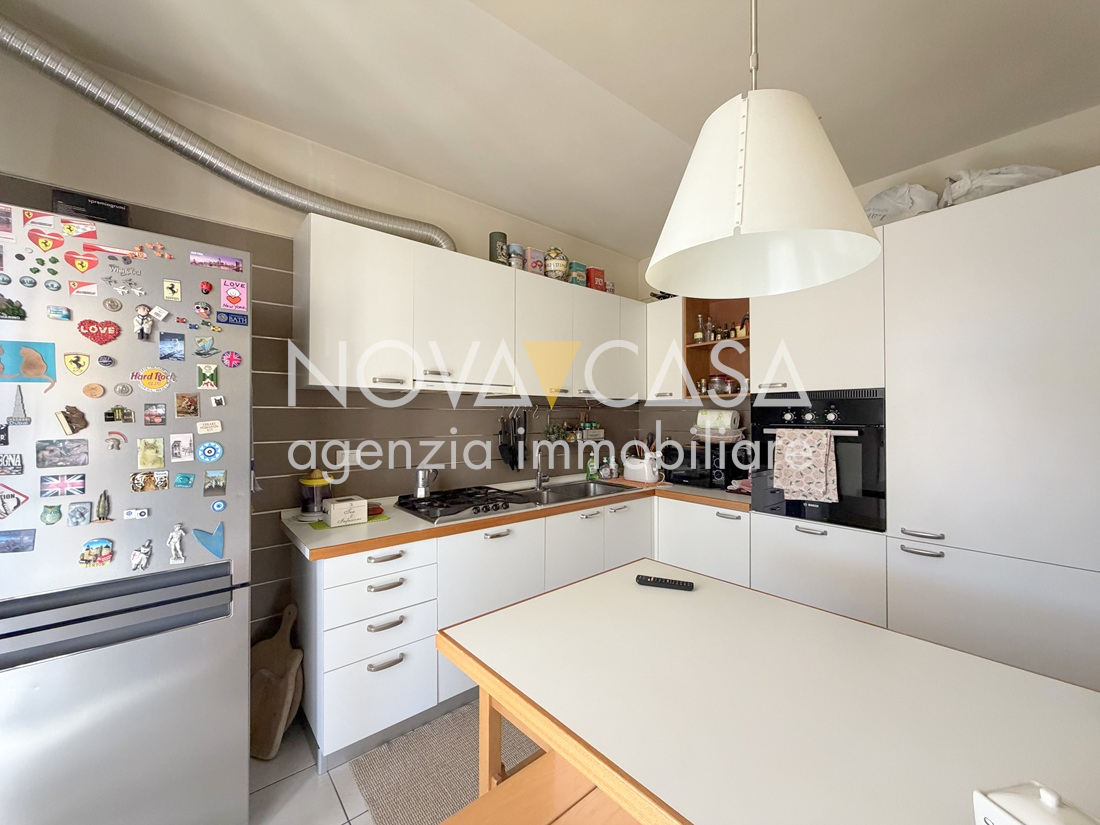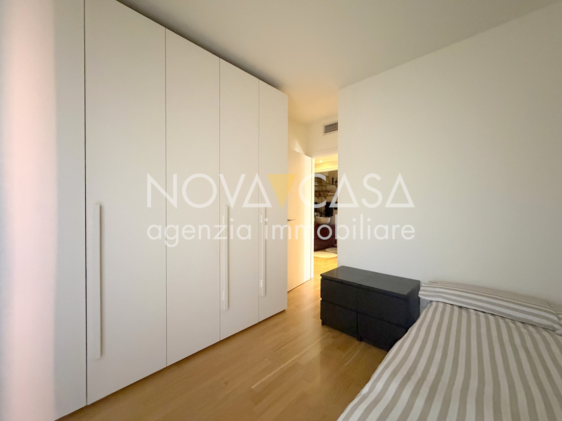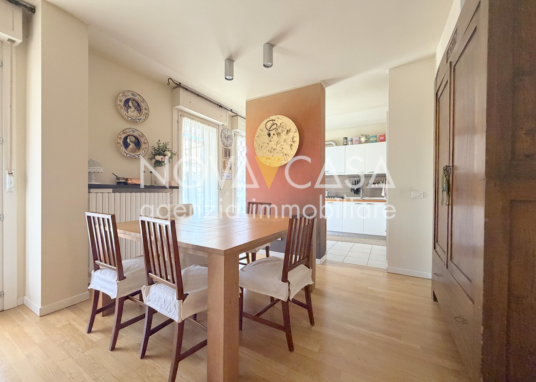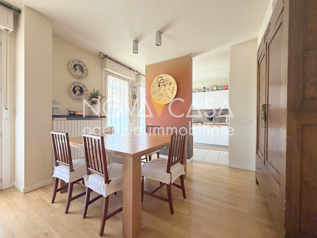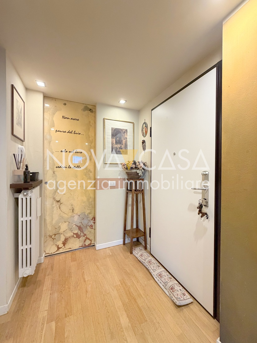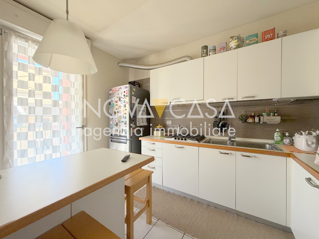 Appartamento di oltre 120 mq, posto al secondo piano servito da ascensore, composto da atrio d’ingresso, ampia zona giorno di circa 40 mq con angolo cottura, loggia di 15 mq, disimpegno, tre camere da letto, bagno, lavanderia, ripostiglio e un ulteriore loggia di circa 10 mq. Completano la proprietà uno spazioso box singolo con cantina.